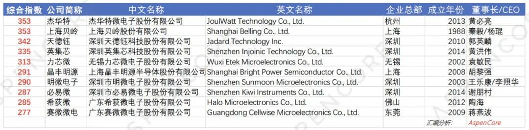 The top 10 power management chip (PMIC) companies selected for the 2023 China IC Design Fabless 100 Rankings