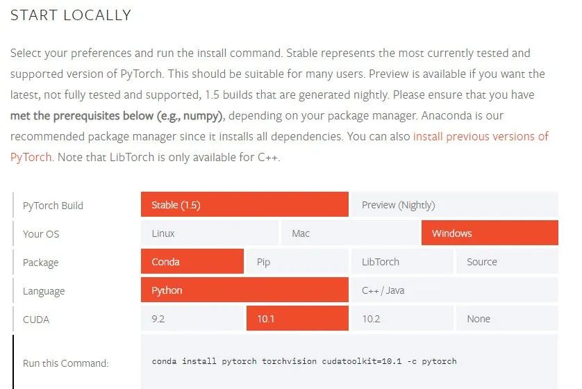 conda install pytorch torchvision cudatoolkit=10.0 -c pytorch