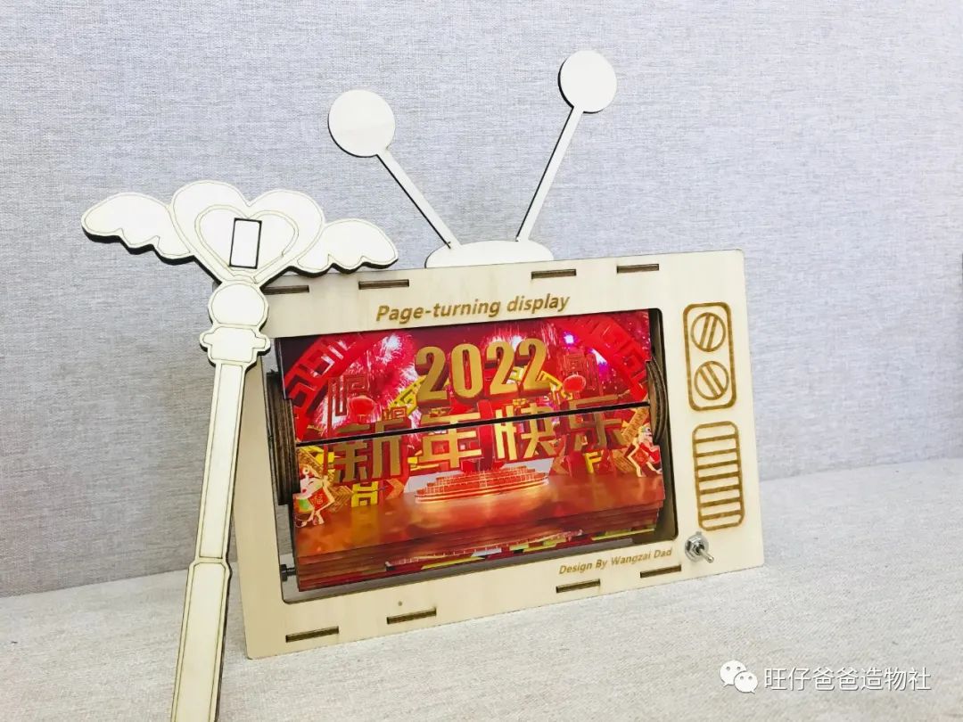 We designed the page-turning animation display to resemble a vintage television set, using laser cutting technology to process linden wood and acrylic panels to create the appearance structure of the display. Figure 3 shows the effect diagram.