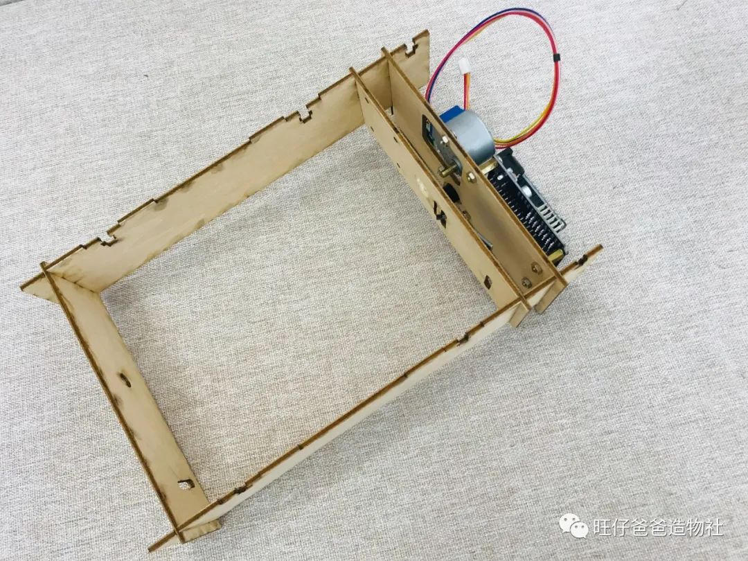 In the LaserMaker software, we designed the vintage television shape as shown in Figure 8. For the flipping part used to display images, we used a 1mm thick transparent acrylic panel, while other structural parts were made of 3mm thick linden wood. To enhance interactivity, we designed a magic wand as the start-stop switch for the page-turning display.