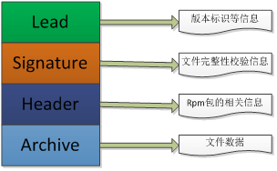 The data packet format of RPM packages differs between versions. The RPM data format described below is based on version 3, and each RPM contains four areas, as shown in the image: