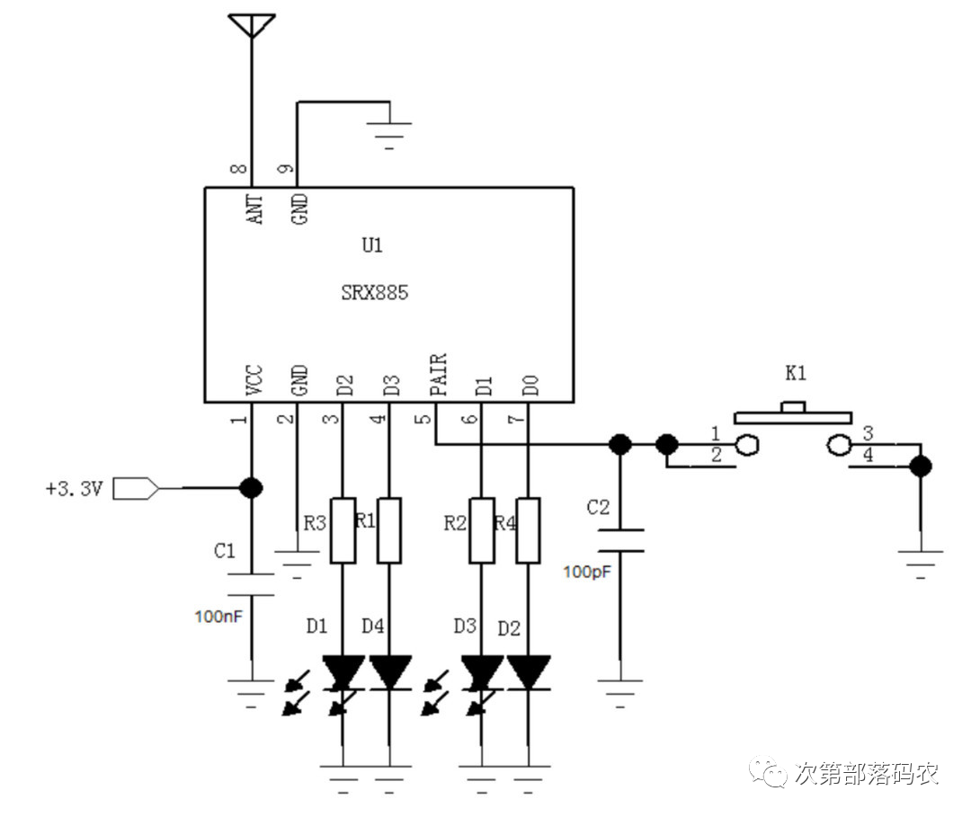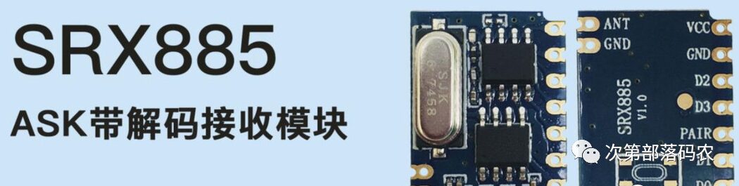 Taking the SRX855 ASK decoding receiving module as an example, ASK is a modulation method, and decoding means there is no need to use a decoding chip for secondary development; it can be used directly. The datasheet states that this module “automatically recognizes and learns common encoding methods such as 2262, 1527, 2240,” meaning that both fixed and learning code remote controls can be paired. ▲