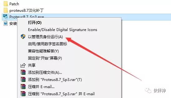 2. After extraction, we get the following files. Right-click to open the Proteus 8.7 installation program as an administrator.