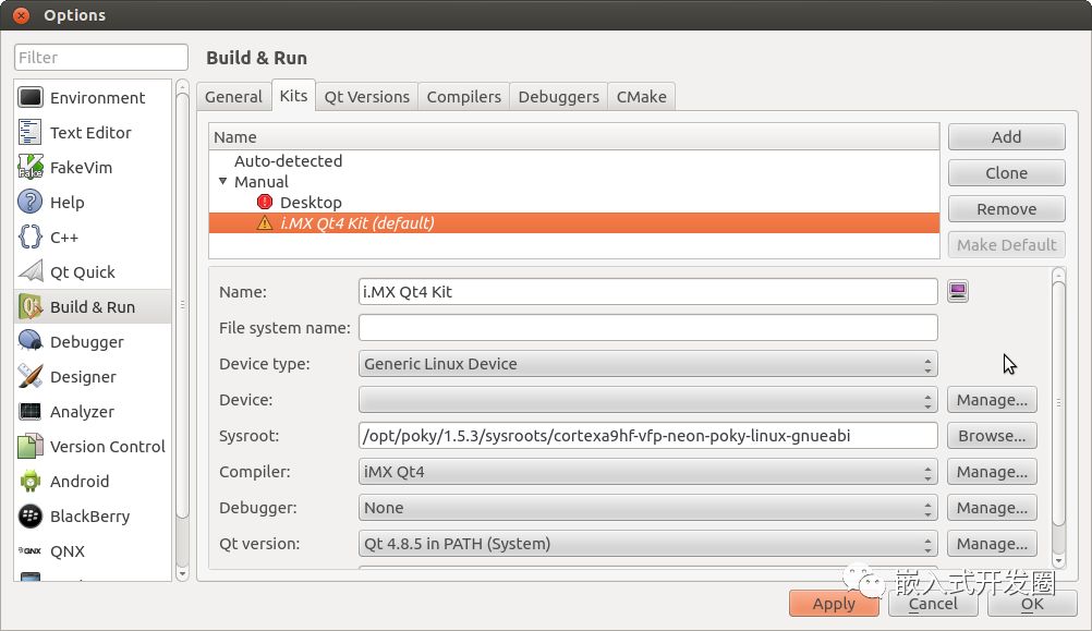 Finally, click OK to exit. Thus, the Qt development environment for the i.MX platform is set up, and you can start developing Qt applications in this environment!
