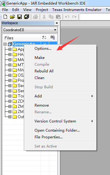 The Z-Stack is installed by default under the C drive. Select the GenericApp project in the ProjectszstackSamplesGenericAppCC2530DB directory to open it. You may be prompted that this is an old project, just ignore it and click OK.