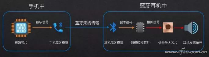 3. The Bluetooth headphones receive the compressed digital signal and decode it into an analog signal using the integrated DAC chip;