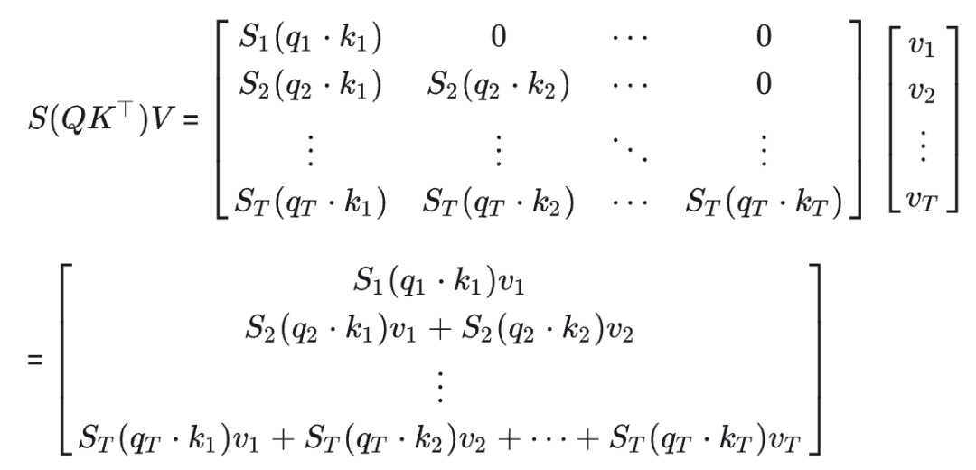By the way, let me answer a common question many beginners ask: why is there no Q cache?Because generating the current token only depends on the current Q. Why does generating the current token only depend on the current Q? This is determined by the self-attention formula:We can see that at position t in the sequence, i.e., the t-th row, it only relates to ππ‘, meaning the attention calculation formula determines that we do not need to save Q at each step. Furthermore, the mathematical properties of matrix multiplication dictate that we do not need to save Q at each step.