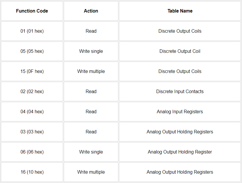 Here are some common function codes: